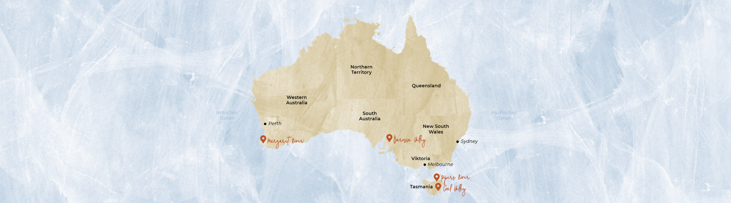 Throughout Australia? No, because most of the continent is too hot and too dry for viniculture, so that only the coastal strip in the south-east and south-west and Tasmania are suitable for it, but there with tremendous quality. Australian top wines are now more than ever characterized by the favorable combination of location, soil conditions and sea climate and thus achieve finesse and strength that is second to none.